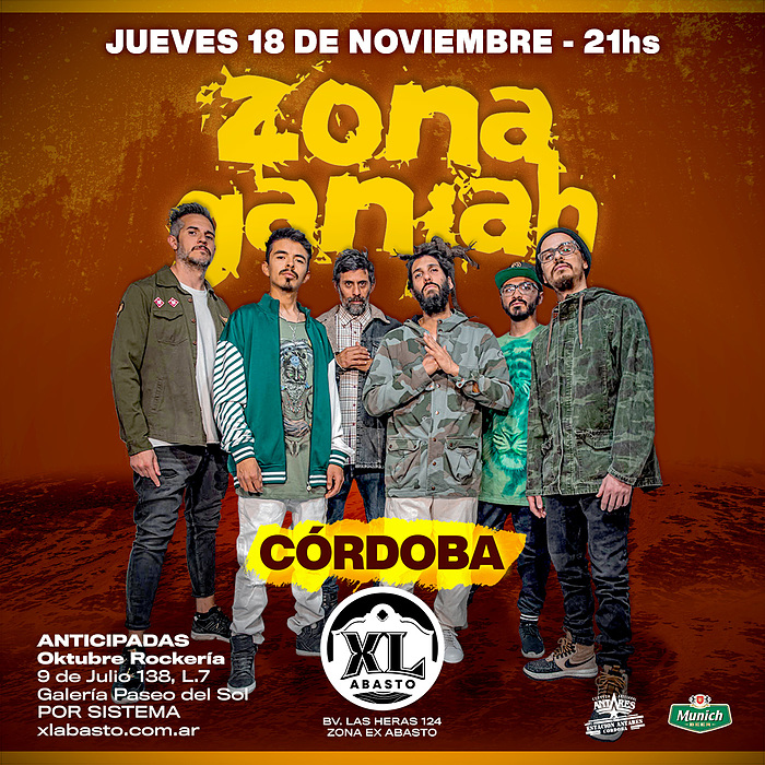 Con 18 años de trayectoria ciento por ciento independiente , participaciones en los festivales más importantes de América Latina y más de 6 millones de seguidores de todo el mundo repartidos en sus redes sociales y plataformas (fuente Soundcharts.com), Zona Ganjah es sin duda una de las bandas más importantes y de mayor convocatoria del reggae en habla hispana.