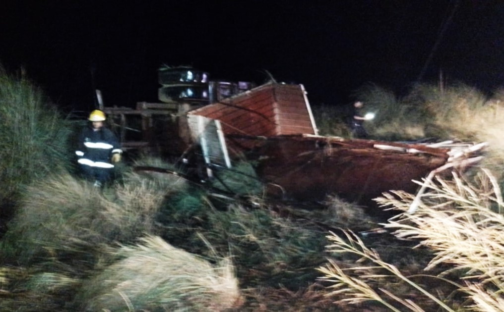 En las primeras horas de la madrugada de hoy en Ruta 35 km 631, se produjo el vuelco de un camión marca Iveco en el cual se conducían dos hombres de 55 y 65 años de edad.