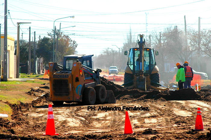 La obra de cloacas en el Barrio Sur avanza a pasos agigantados. Los primeros trabajos de la obra, ya se realizaron en la calle Jorge Newbery; la última parte del populoso sector del radio urbano, que en este primer tramo beneficiara a los vecinos del lugar.