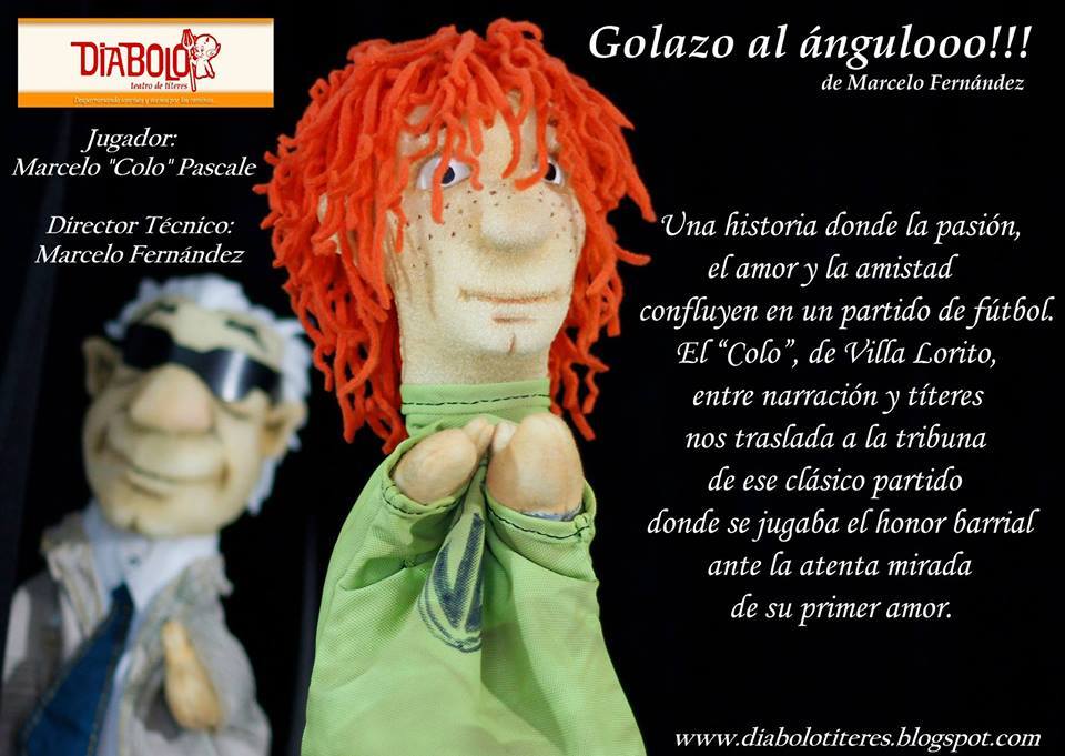 En el marco del Ciclo “Viva el Verano en la ciudad 2018”…este Viernes 12 de Enero llega a la plaza Domingo Faustino Sarmiento de nuestra ciudad Marcelo “Colo” Pascale, de la compañía “Diábolo” de Buenos Aires, en el contexto del 7º Festival Internacional “Titiritodos”, con la obra de teatro de títeres: Golazo al Ángulo !!! de Marcelo Fernández. Una historia donde la pasión, el amor y la amistad confluyen en un partido de fútbol.