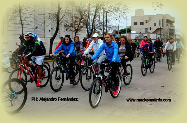 Tal como estaba previsto el pasado Sábado 24 de Junio, se realizó la 3ºra Edición del recorrido denominado "Ciclo Turismo", organizado por la Dirección Municipal de Deportes y el Grupo de Apoyo al Deporte “Movete Vicuña”. La tarde -casi primaveral- se sumo a la convocatoria y casi cien fueron los ciclistas de todas las edades, desde niños, jóvenes y adultos que participaron del ameno recorrido por un trazado que incluia arterias del radio urbano y caminos rurales, pasando por lugares pintorescos del paisaje mackennense. La partida fue desde la Plaza Domingo Faustino Sarmiento pasada las 14, 30 Hs y la bicicleteada estuvo coordinada por el grupo de ciclistas que están preparados para competir en pruebas de alto nivel. Por eso la camioneta que guiaba a los participantes era conducido por el ciclista profesional Jose Perfecto Alvarez quien tiene mucha experiencia en este tipo de eventos.