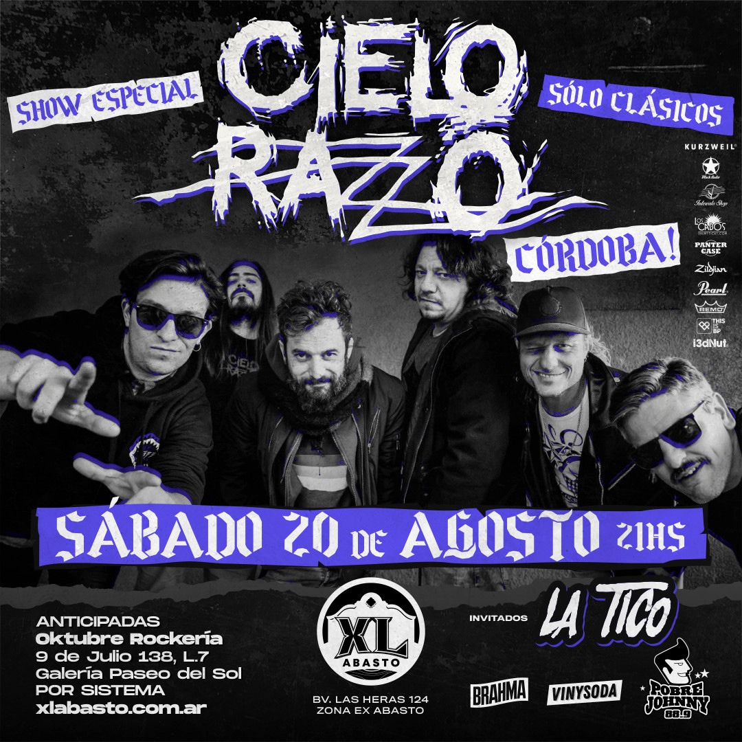 Cielo Razzo vuelve a Córdoba para otra noche historica en el abasto. La banda se prepara para brindar un show especial con un repertorio de clásicos, Los encargados en abrir el show será la banda córdobesa La Tico.